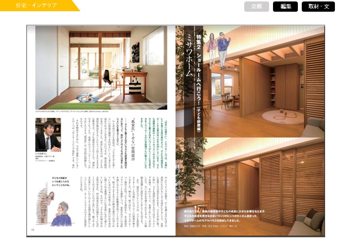 全労済広報誌『住まいるライフ』 全労災広報誌『住まいるライフ』にて、住宅に関する特集やコラムの編集ライティングを約4年間担当させていただきました。住宅メーカーやリフォーム会社、建築家などの協力を得て、取材先の選定から取材、記事のライティングなど一連を担当しました。 2024年11月24日 投稿先 インタビュー記事, 住宅・インテリア, 編集ライティング ← 過去の投稿へ 次の投稿へ →
