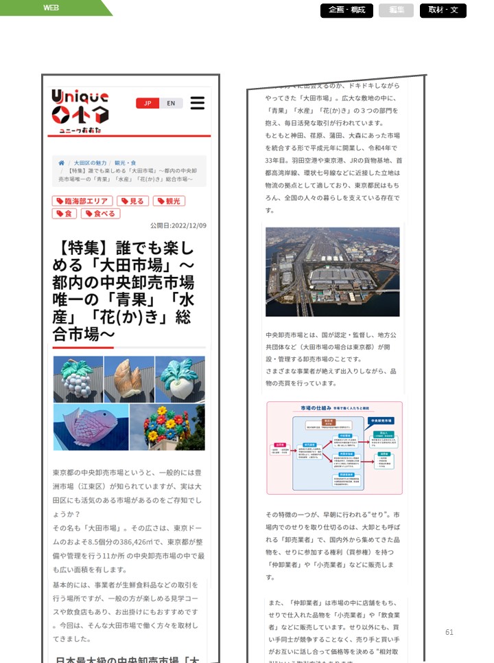 東京都大田区のシティプロモーションサイト『Unique ota(ユニークおおた)』にて、取材記事の制作を担当させていただいております。